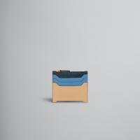 カーフレザー製の“TRUNKAROO”カードケース。ファスナー式コインケース1つ、表面にカードスロット3つ、背面にスロットポケット1つ。フロントにロゴ入り。
