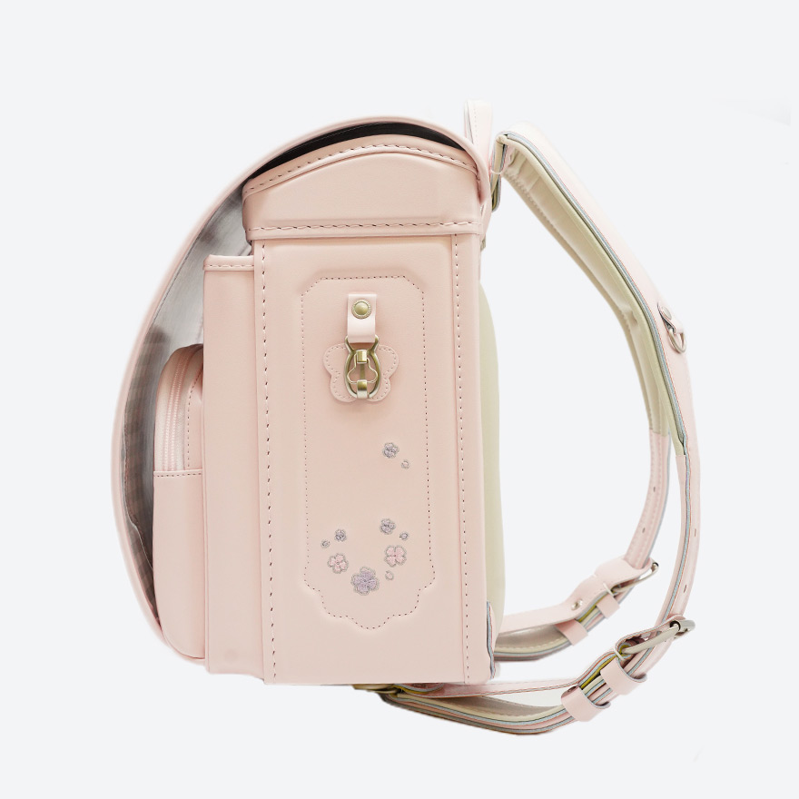 たくさんの花につつまれたやわらかなデザインのランドセル