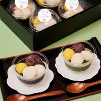 京都産宇治茶を使用したゼリーに小豆、栗、もちもちとした求肥餅をトッピング。お茶の苦みと風味が感じられる、上品な銘茶ゼリーです。あっさりと上品な味わいながらも、食べ応え十分。抹茶ゼリー、焙じ茶ゼリーの二種それぞれの味わいをお楽しみください。