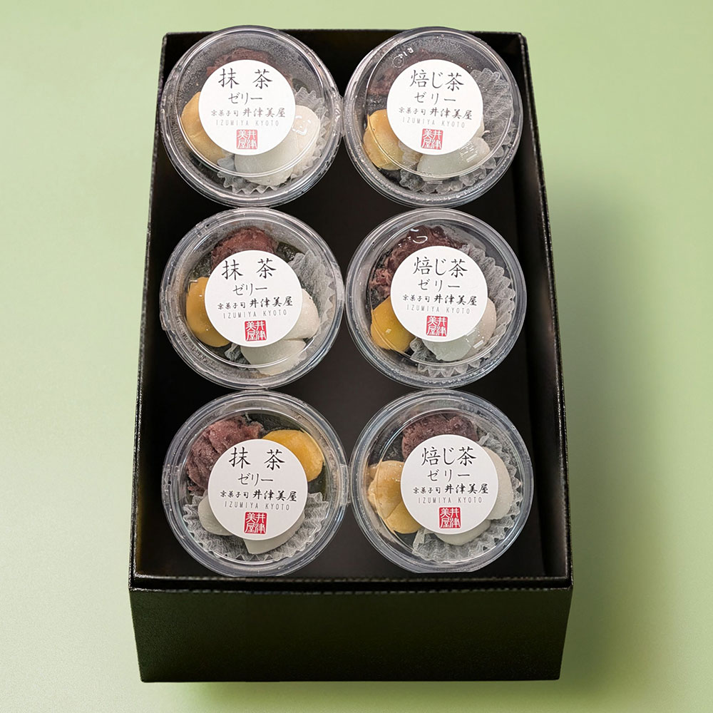 抹茶ゼリー×3、焙じ茶ゼリー×3