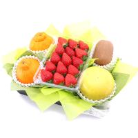 いちご:栃木・福島県産他(250g)×1パック、デコポン:熊本・長崎県産他(200g)×2個、キウイフルーツ:香川・愛媛・福岡県産他(130g)×1個、メロウゴールド:アメリカ産(400g)×1個または宇和ゴールドまたは美生柑:愛媛県産他(300g)×1個