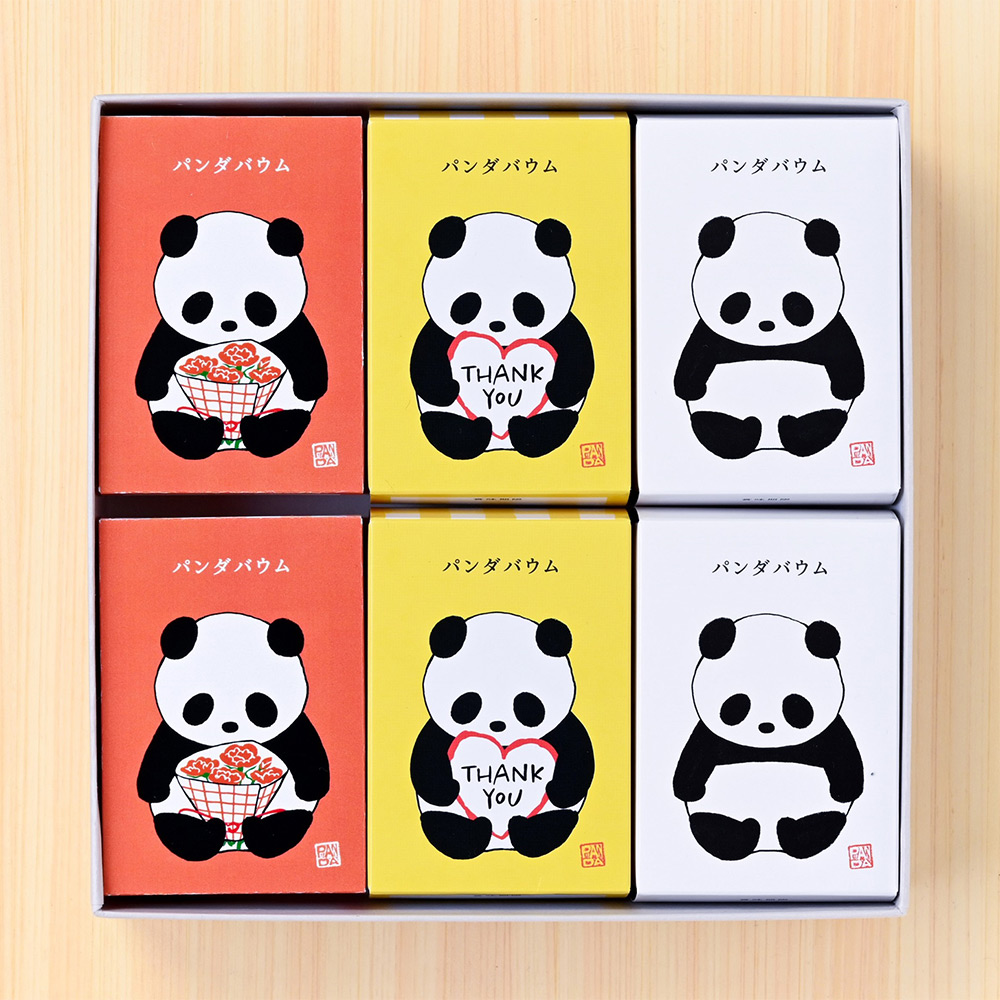 花束パンダバウム(メープル味)×2個、Thank Youパンダバウム(はちみつ味)×2個、パンダバウム(プレーン)×2個