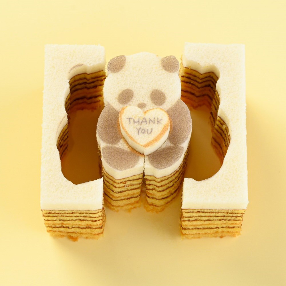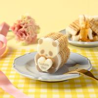 母の日の贈りものにぴったりな型ぬきバウムができました。とびきりきれいな花束を抱えた「花束パンダバウム(メープル味)」と、ありがとうの言葉を贈る「Thank Youパンダバウム(はちみつ味)」です。定番プレーンのパンダバウムと詰め合わせにしました。大切な人への、両手いっぱいの感謝を伝えるパンダたち。型ぬきしながらお召し上がりください。