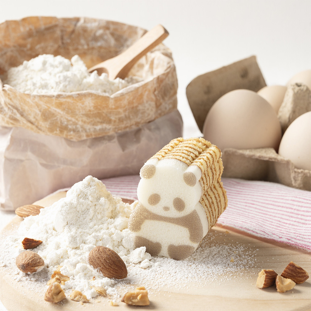 パンダの形に型ぬきしながら食べる、遊び心のあるバウムクーヘンです。