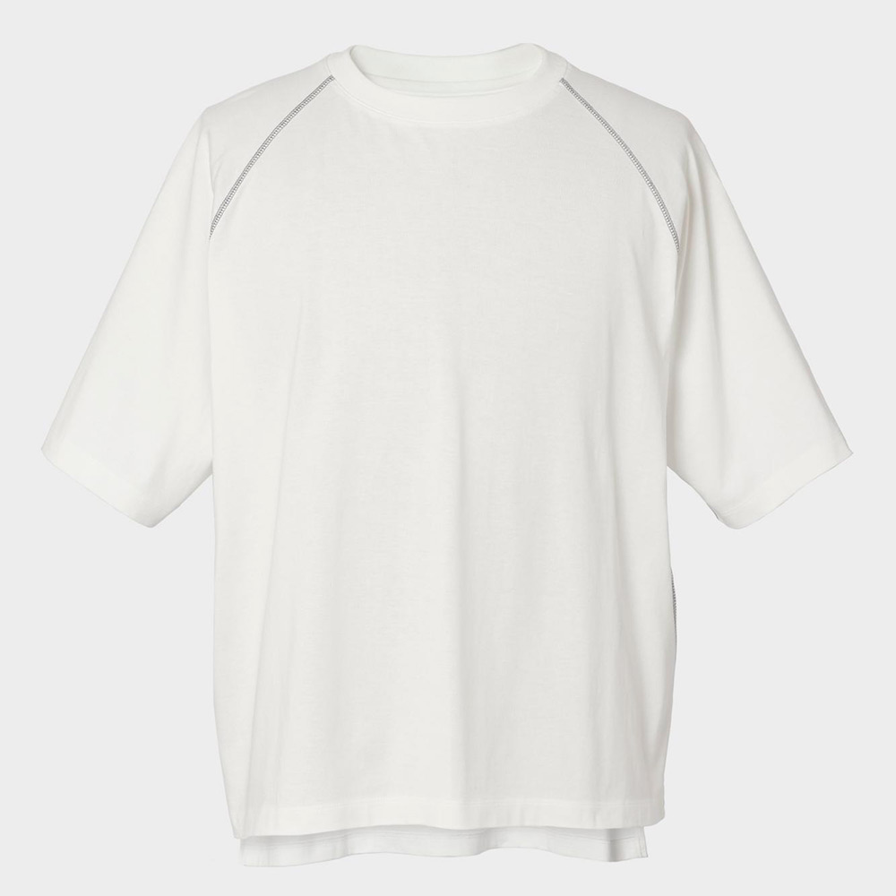優しい肌触りが心地よい、ラグランスリーブのカットソー。袖の切り替え部分に施したカラーステッチが、直覚的にも視覚的にもアクセントになったデザイン。脇にマチを施すことで、腕の動きもスムーズに。