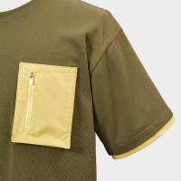 ICカードが入るコンパクトな胸ポケットがアクセントのカットソー。ポケットは異素材使いで、触れた際に分かりやすいよう工夫。袖口にもポケットと同じ生地を配した重ね着風デザインです。表側は落ち着いたナチュラルな風合い、裏側はサラっとした肌触りの素材を使用。