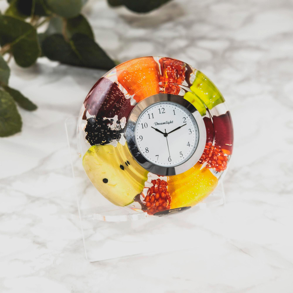 薄いガラスの中に色とりどりのオーナメントをジェルで流し込み、ハンドメイドで閉じ込めた<ドリームライト>。 カラフルなフルーツをガラスいっぱいに閉じ込めたビタミンカラーが人気の「ハッピーフルーツ」は、お部屋のアクセントとしても大切な方への贈りものにもぴったりです。