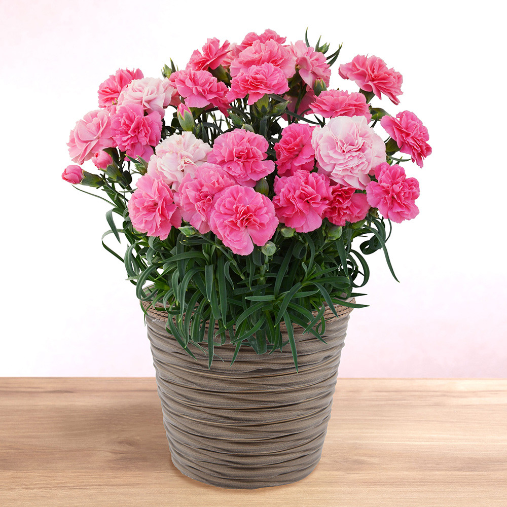 いつも優しいお母さんに、「ありがとう」の気持ちを伝えるなら、優しさあふれるピンクのカーネーションをチョイスしてみてはいかがですか。ほのかな甘い香りと花色の変化を楽しめる「ひなあられ」は、優れた新品種を評するジャパン・フラワー・セレクション2024-2025で芳香がうるわしく、香りのデザインが優れた品種に授与されるフレグランス特別賞を受賞しました。花持ちがよく、咲き始めは王道の桃色、咲き進むにつれて徐々に優しい桜ピンクに変化し、同じ鉢の中でピンクのグラデーションを楽しめます。※つぼみが多い状態でお届けします。天候や気温により、お届け時の開花状況は異なります。