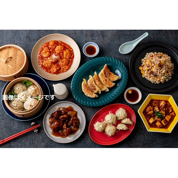 大海老のチリソース130g×1、本格四川風麻婆豆腐130g×1、黒酢酢豚130g×1、あふれる肉汁餃子(35g×4)×1