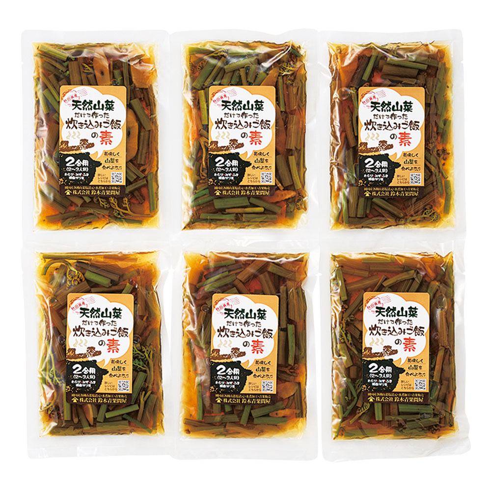 秋田県の出羽丘陵で採れる天然の山菜を、こだわりの調味料で仕上げた炊込みごはんの素です。