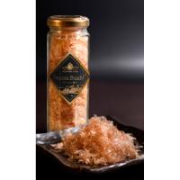 試作に5年の歳月をかけ、2023年に完成したベーコンの削り節です。ほんのりとしたスモークの香りと程よい旨味が楽しめます。サラダの上や卵かけご飯、パスタ、ピザ、リゾットなどトッピングとして幅広くお楽しみいただけます。2024年は北のハイグレード、DLG金賞、料理王国優秀賞、お土産グランプリ、ITI二つ星確定など数多くの賞をいただきました。