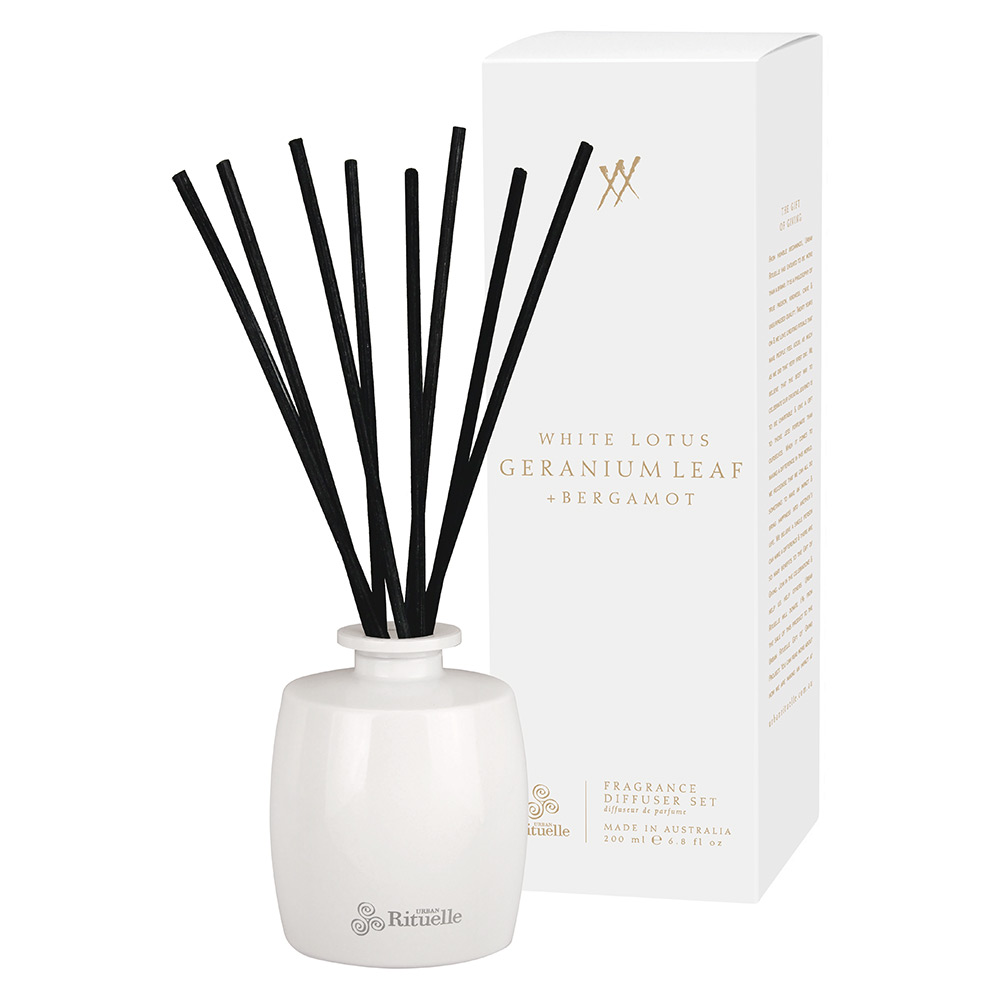 2019年の<UrbanRituelle(アーバンリチュエル)>20周年を祝し、今までの経験や知識の集大成として作り上げたのが、オールオーストラリアンメイドの「ALCHEMYアルケミー」シリーズです。20年の経験を元に人々を魅了する様々な香りのブレンドから、厳選した「ブラックアンバー・ローズウッドシダー」「ホワイトロータス・ゼラニウムリーフ・ベルガモット」の2種類をお届けします。これら2つの香りは、対照的でありながら、同時に使うと、深みが増し、新たな香りが生まれます。ホワイトロータス、ゼラニウムリーフ+ベルガモットの香りは、はかなくデリケートなホワイトロータスの香りが、ゼラニウムとベルガモットにミックスされた神秘的な香りです。