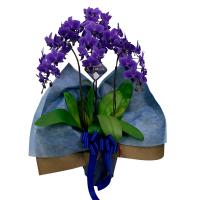 石原産業が15年以上をかけて研究開発した青色胡蝶蘭『ブルージーン』。花言葉は『奇跡のめぐり逢い』。試行錯誤を経てツユクサの青色遺伝子の導入に成功し誕生した、希少な蘭です。やや紫がかった青色の花は、花径約6~7cm、草丈約50~60cmの中輪ミディ系の品種で、美しさと感動を色褪せることなく届けます。※つぼみを含む状態でお届けします。 気温によっては、お届け時に咲く場合もございます。※花色は、モニター、照明などの環境により実物と異なって見える場合もございます。