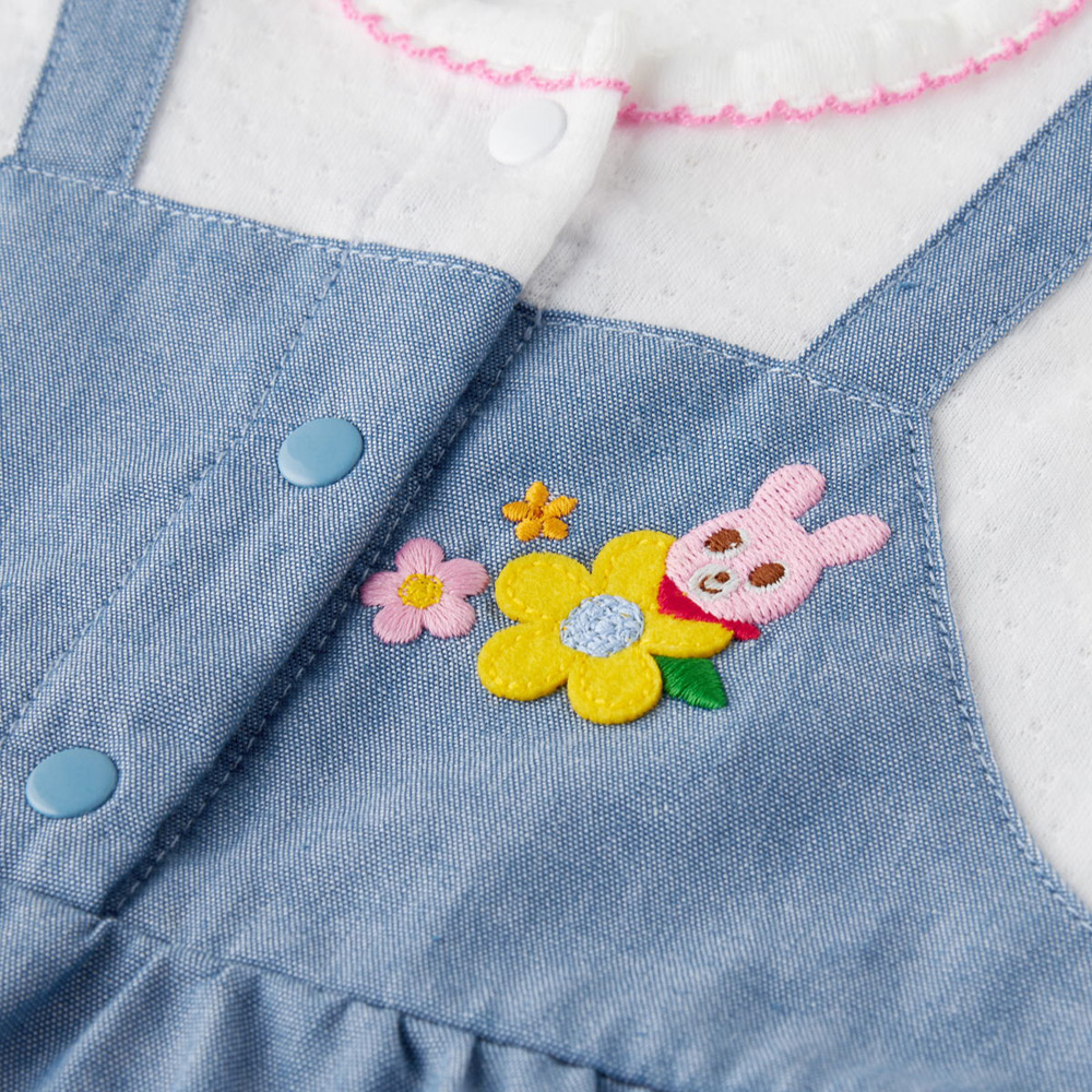 <ショートオール>素材:メッシュ天竺 (ジャンパースカート部分)ダンガリー (ブルマ部分)40/2天竺プリント、品質:綿100%