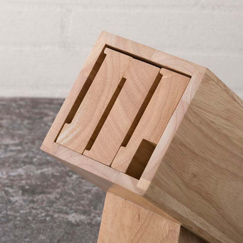 刃渡り220mmまでの包丁3本とキッチンはさみが収納できる、木製ナイフブロックです。内部のプレートを分解して清掃できるので衛生的です。