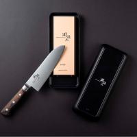 関孫六ブランドの高価格帯の包丁もしっかりとメンテナンス可能な角砥石。研ぎ台として使える収納ケースは、裏面に滑り止め付きで、蓋は砥石を水に浸す容器にも使えます。「中砥石#1000」は、包丁を研ぎ直す砥石として最も一般的な番手の砥石です。研削力もあるので刃先の修正など微調整が可能で、汎用性が高く、日常の研ぎ直しに最適です。