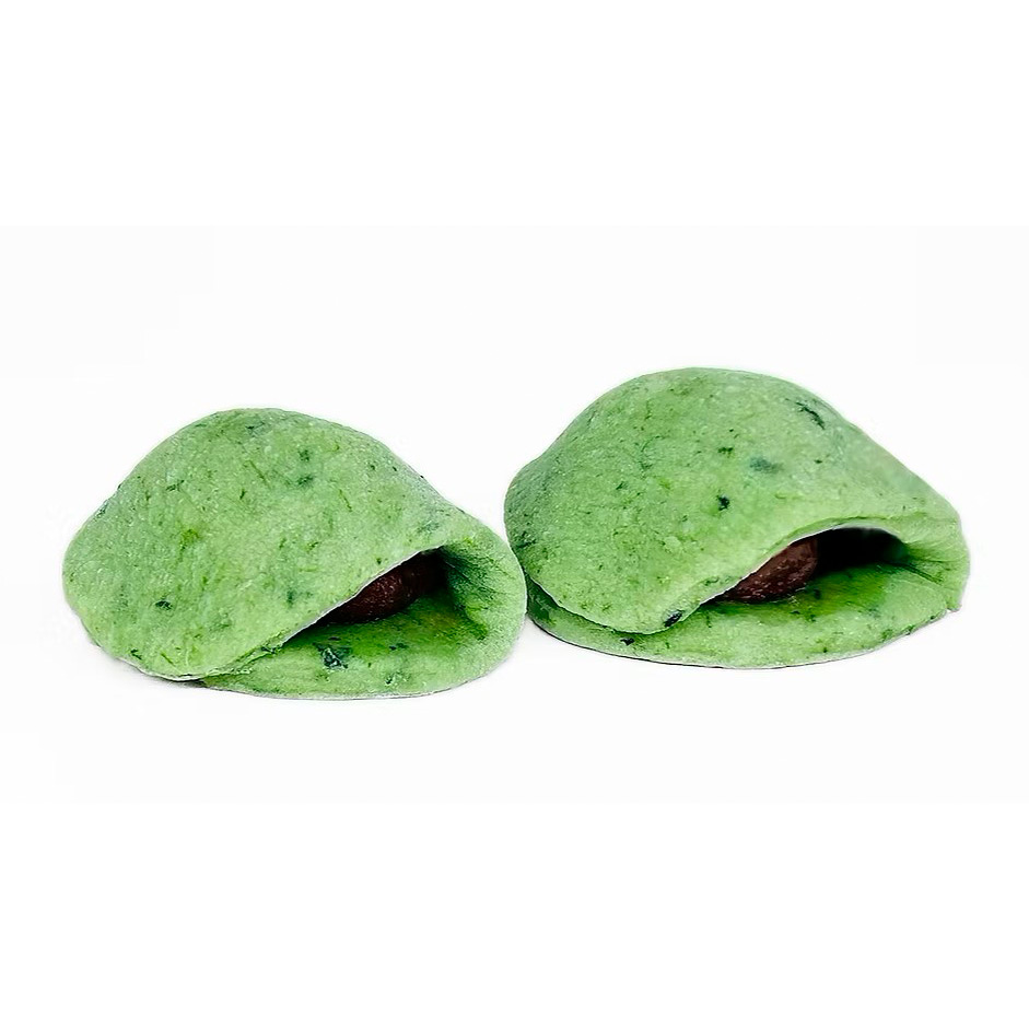 ふわふわの羽二重餅にたっぷりの青森県産のよもぎを加え、さらりとしたこしあんを包みました。