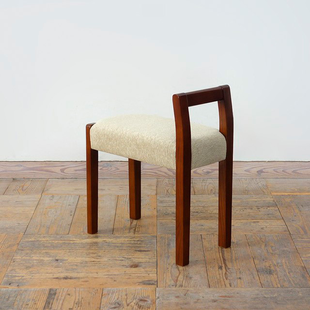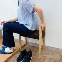 ブーツを履く女性や、足腰が不自由な方の玄関での立ち上がりをケアしてくれる優しいデザインのスツールです。ゆるやかに弧を描くアームは美しい木目や木肌と相まって、玄関を上品に演出してくれます。この玄関スツールは、日本人人体寸法データ(日本工業標準調査会調べ)の膝下寸法を元に、食卓イスよりやや低めの38cmにしました。小柄な女性でも足が地面に着くので立ち座りがしやすくなっています。また、アームがない側を部屋に向けると、玄関側にスツールを置いていても、室内からそのまま座る事ができ、玄関に足を付けずに靴を履くことが出来ます。靴の脱ぎ履きの動作をよりスマートに、よりスムーズに行える玄関スツールです。また幅(約)450mmなので、狭い玄関でも場所をとりません。