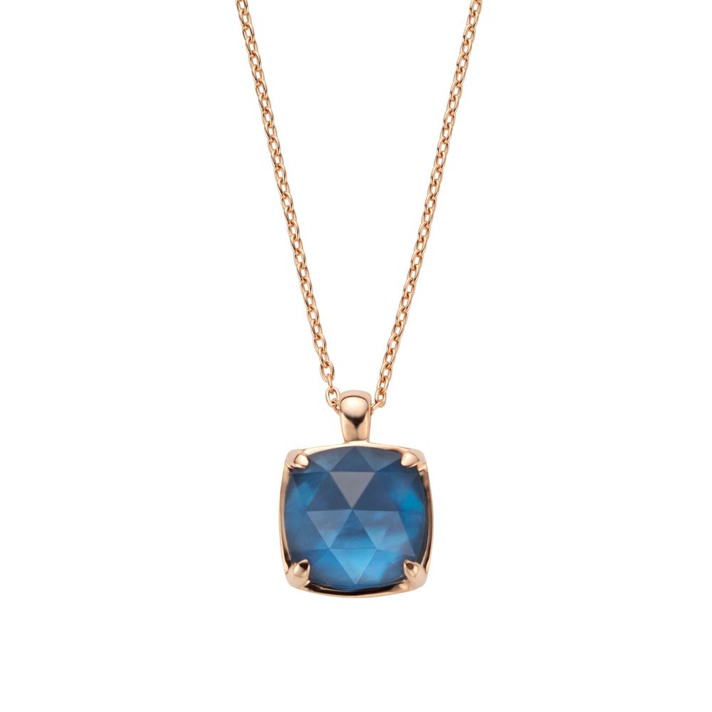 ピンクゴールドと深いブルートパーズの組み合わせが新鮮なネックレス