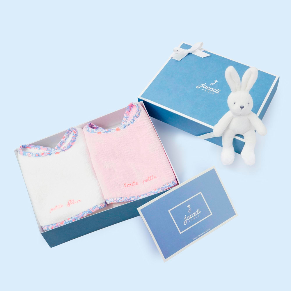 リバティスタイとキュートなウサギのぬいぐるみがセットになったデイリーユースしやすいベビーギフトです。出産祝いやお誕生日のギフトにもおすすめです。<リバティスタイ>リバティ柄のパイピングがジャカディらしい白とピンクがペアになったスタイ2枚セット。スナップボタン留めで付け外しも簡単です。<ウサギぬいぐるみ>ベルベット調生地の柔らかくキュートなウサギのぬいぐるみ。赤ちゃんも握りやすいサイズです。一緒にお出掛けに連れ出して。