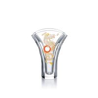 末広がりの形から、しばしば繁栄や長寿の象徴とされる銀杏の葉をイメージしてデザインされた「ギンコベース」。そのクリスタルの表面に、ドラゴンが太陽を手に天へ昇る姿が金彩とエナメルで描かれました。このイラストレーションはフランスのデザイナー、ミッシェル・カイユによるデザイン。ドラゴンのダイナミックなポーズ、大胆で緻密なライン、そして美しいアクセントカラー。このデザイナー独特のさまざまなスタイルを融合させた表現がイマジネーションを掻き立てます。
