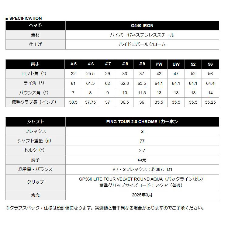 G440 アイアン 5本セット(#6~9、PW) PING TOUR 2.0 CHROME カーボンシャフト 2025年モデル