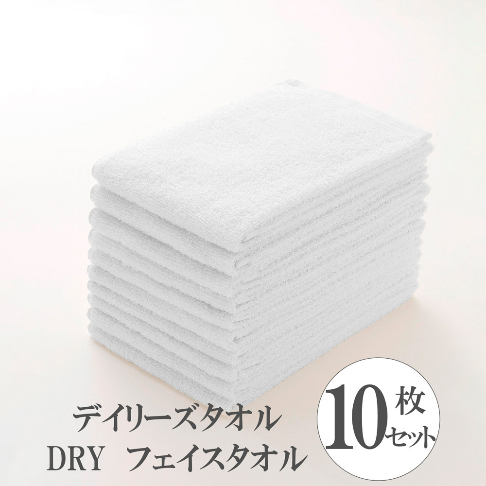 デイリーズタオル DRY フェイスタオル10枚セット(ブルー・グレー・アイボリー・ホワイト・ベージュ)