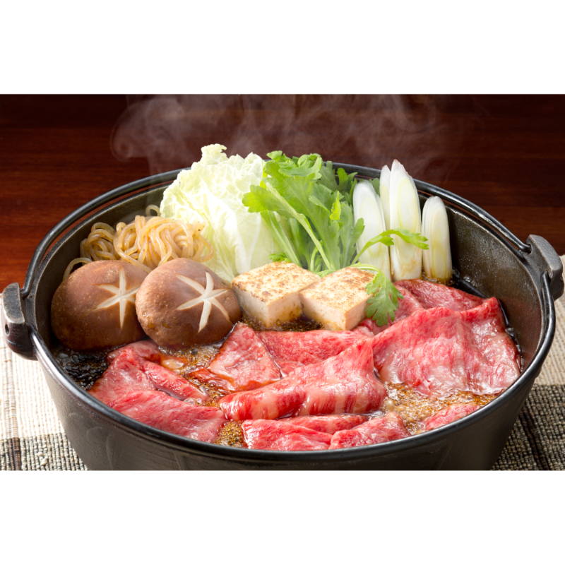 国内最高級銘柄牛のひとつ「飛騨牛」。きめ細かい肉質、ほどよい霜降り、濃厚な旨みが特徴。すき焼きと焼肉、贅沢に食べ比べ。