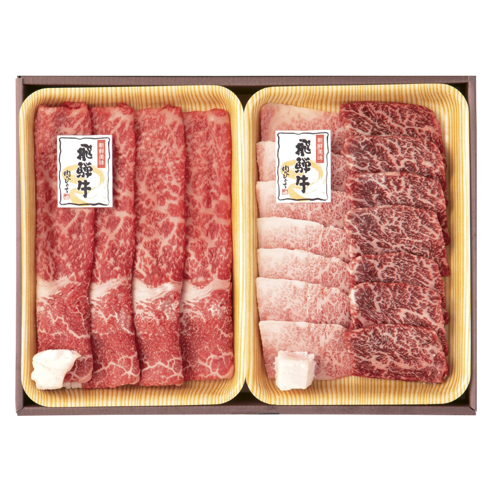 飛騨牛すき焼き用(肩)250g、飛騨牛焼き肉用(バラ)250g 計500g 原産地:岐阜県