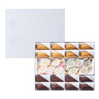 ポルボロン(ヘーゼルナッツ×3個、ショコラ×4個、ほうじ茶×3個)、フィナンシェ(和三盆×8個、ショコラとフランボワーズ×8個)