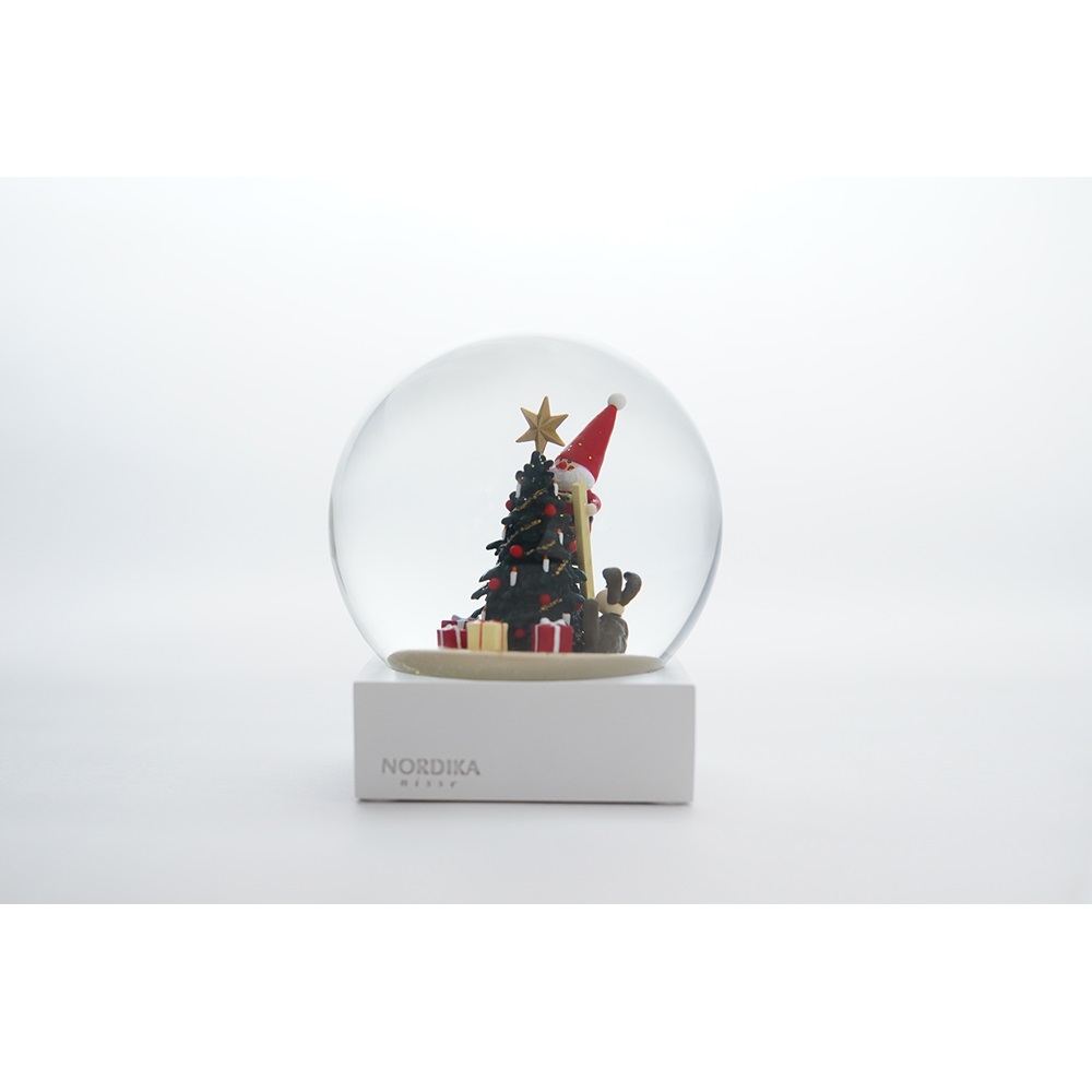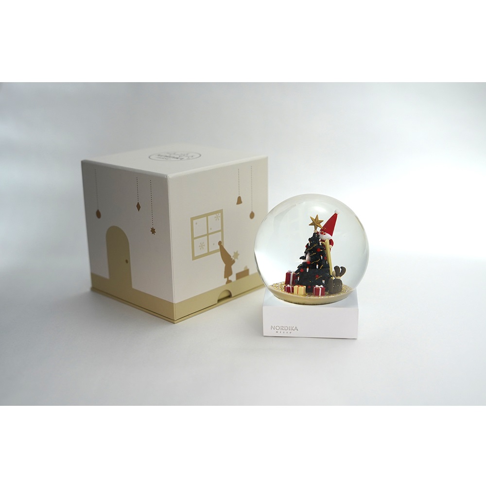 ノルディカニッセの魅力が詰まった、特別なスノードーム第二弾。アメリカバーモント州に拠点を置くスノードームメーカーCoolSnowGlobes(R)とのコラボレーションです。ひとつひとつ手作業で色付けされたノルディカニッセは、細かな表情まで忠実に再現。ゆっくりキラキラ舞い落ちる光の粒が、幻想的な世界を演出します。クリスマスが近づく頃、ニッセは小さな相棒の犬と一緒に、お部屋の中でツリーの飾り付けをしています。犬はオーナメントやキャンドルをニッセに手渡し、ふたりはついに星をツリーのてっぺんへ。ニッセと犬は願いました。「世界中に、あたたかなクリスマスが届きますように。」そんなふたりの優しい願いと、心あたたまるひとときを、スノードームにそっと閉じ込めました。
