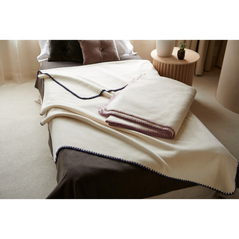 綿花栽培で有数の生産量を誇る、ウズベキスタン共和国。中でもサマルカンド地方・ブハラ地方・フェルガナ地方は寒暖差が大きく、綿花栽培に適しています。約30mmの長い繊維となった良質な完熟綿を選りすぐり糸に紡いだ「サマルカンダリア(R)」は、光沢・艶があるソフトな風合いが特徴です。また、〈くらしすと〉では、日本国内の希少な職人技術による、ものづくりにこだわっており、織物産地である「紀州高野口」で丁寧に織りあげたブランケットは肌になめらかな仕上がりです。パイル糸(毛羽部分)に「サマルカンダリア(R)」オーガニックコットンを染色せずに生成りのまま使用し、素材本来の風合いも大切にしました。