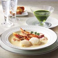 りんごのヴィシソワーズ160g・具材(ほたて貝柱2粒、甘海老2匹、水だこ3切れ入)各2、小松菜のポタージュ160g×2