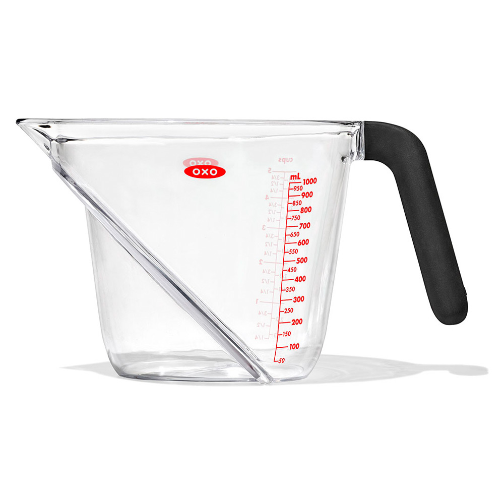 角度のついた本体表面は、カップをまっすぐ見下ろすことで目盛りを量ることができるので、液体を入れてから量を確認したり調整したりする手間が不要。