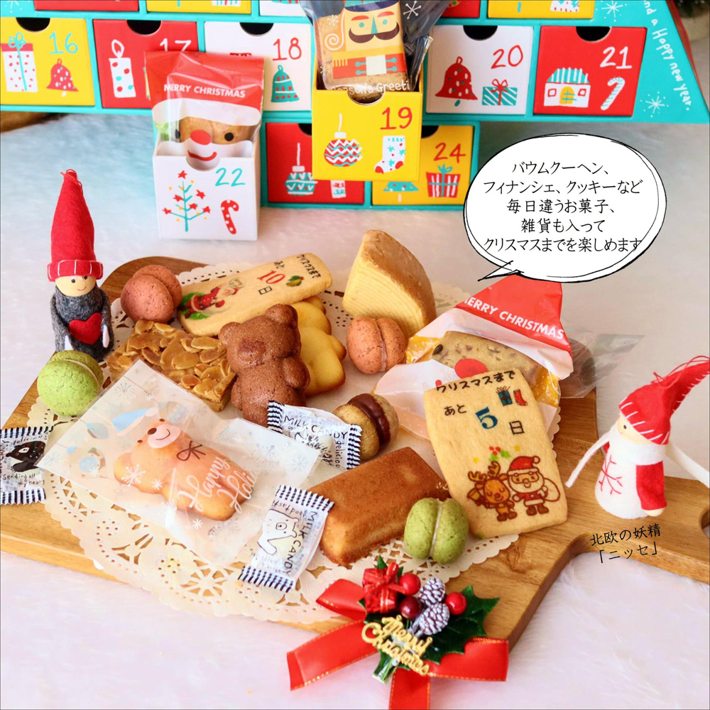 アドベントカレンダーとはクリスマスまでの日数を数えるためのヨーロッパ発祥のカレンダーです。1日ひとつ引き出しを開けてプレゼントをもらえるので、「今日は何が入っているのかな?」と毎日ちょっとだけわくわくしながらクリスマスを迎えることができます。大きなツリー型なので、置くだけでクリスマスを盛り上げるにぎやかなディプレイにもなります。