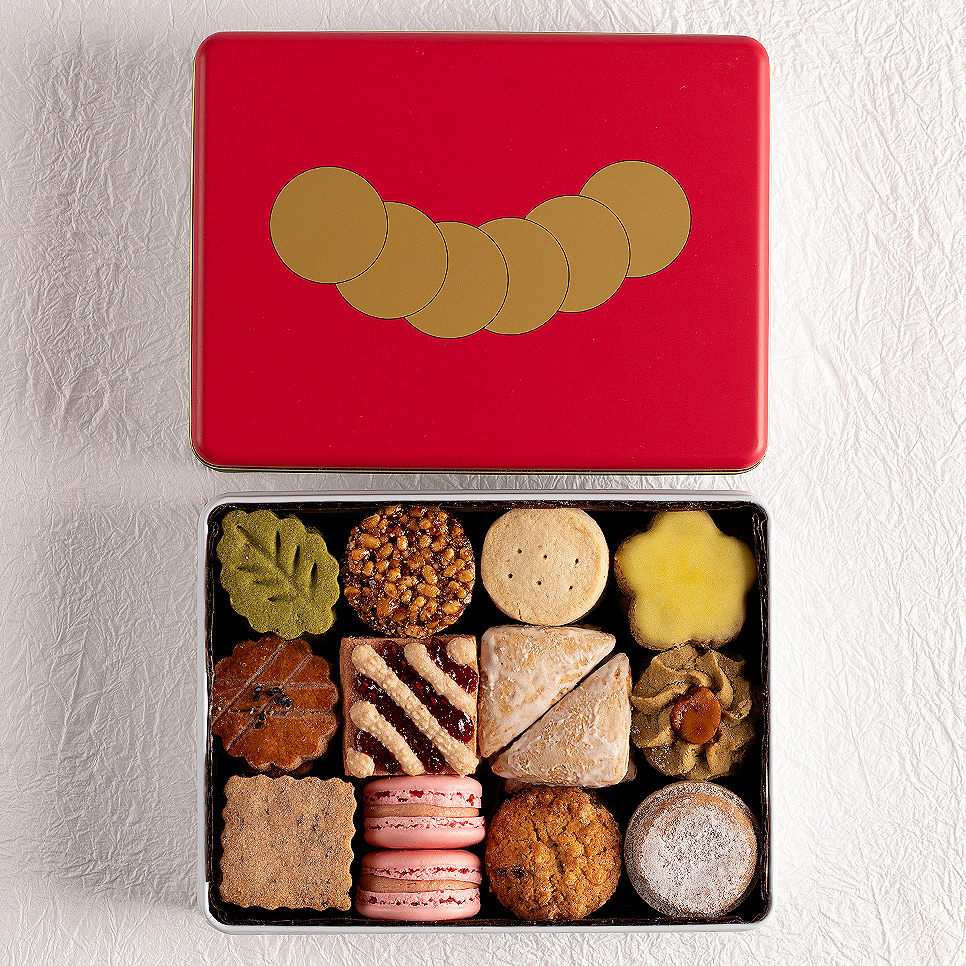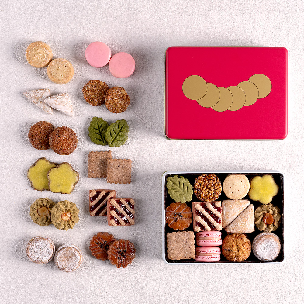 舌で感じる5つの味に「楽しみ」をプラスした「六味」をコンセプトに、ひとつひとつ丁寧に作り上げた和素材の焼菓子たちを詰め合わせたクッキー缶。小豆や米粉といった和素材とフルーツやお茶などを組み合わせ、口どけや食感も様々にお楽しみいただけます。