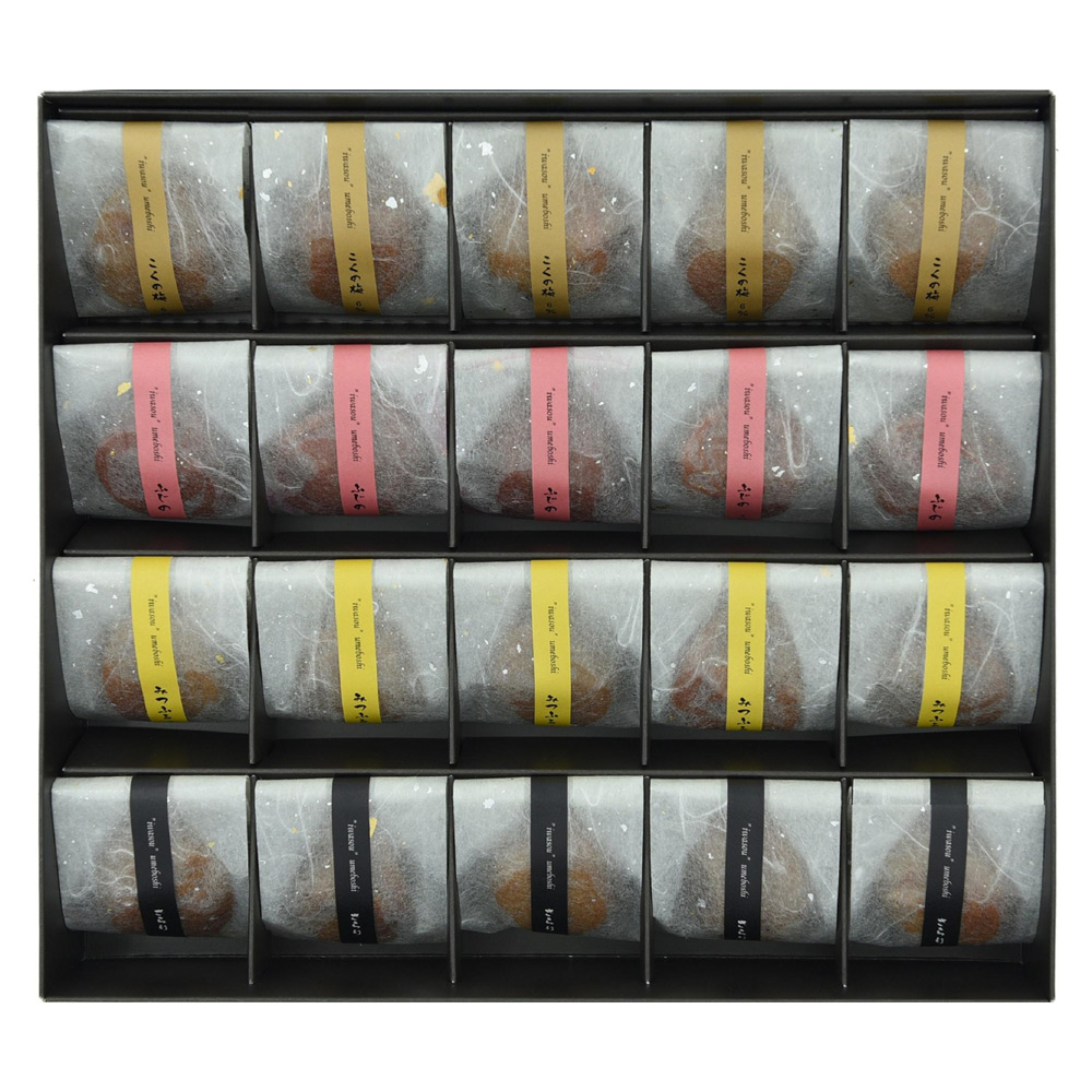 皮が薄く、果肉の柔らかな完熟の紀州産南高梅を一粒ずつ丁寧に個包装にしました。4種の味が楽しめる梅干アソートです。