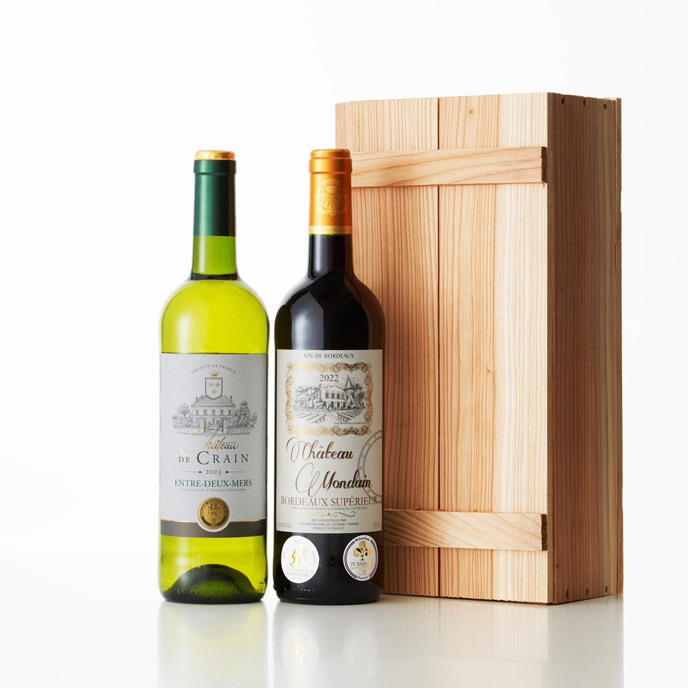 フランスボルドー金賞受賞紅白ワイン2本セット(木箱入)