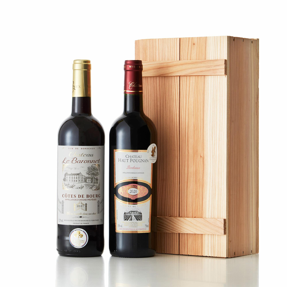 フランスボルドー金賞受賞赤ワイン2本セット(木箱入)