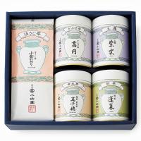 玉露「紫雲」90g缶、煎茶「蓬莱」100g缶、かぶせ茶「高円」90g缶、玄米茶「高千穂」100g缶、ほうじ茶「小倉かおり」150g袋 各1
