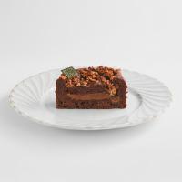 ほろ苦いキャラメルを閉じ込め上部にはキャラメルヌガー、アーモンドやシュトロイゼルを乗せ香ばしく焼き上げた濃厚で軽やかな食感のガトーショコラ。