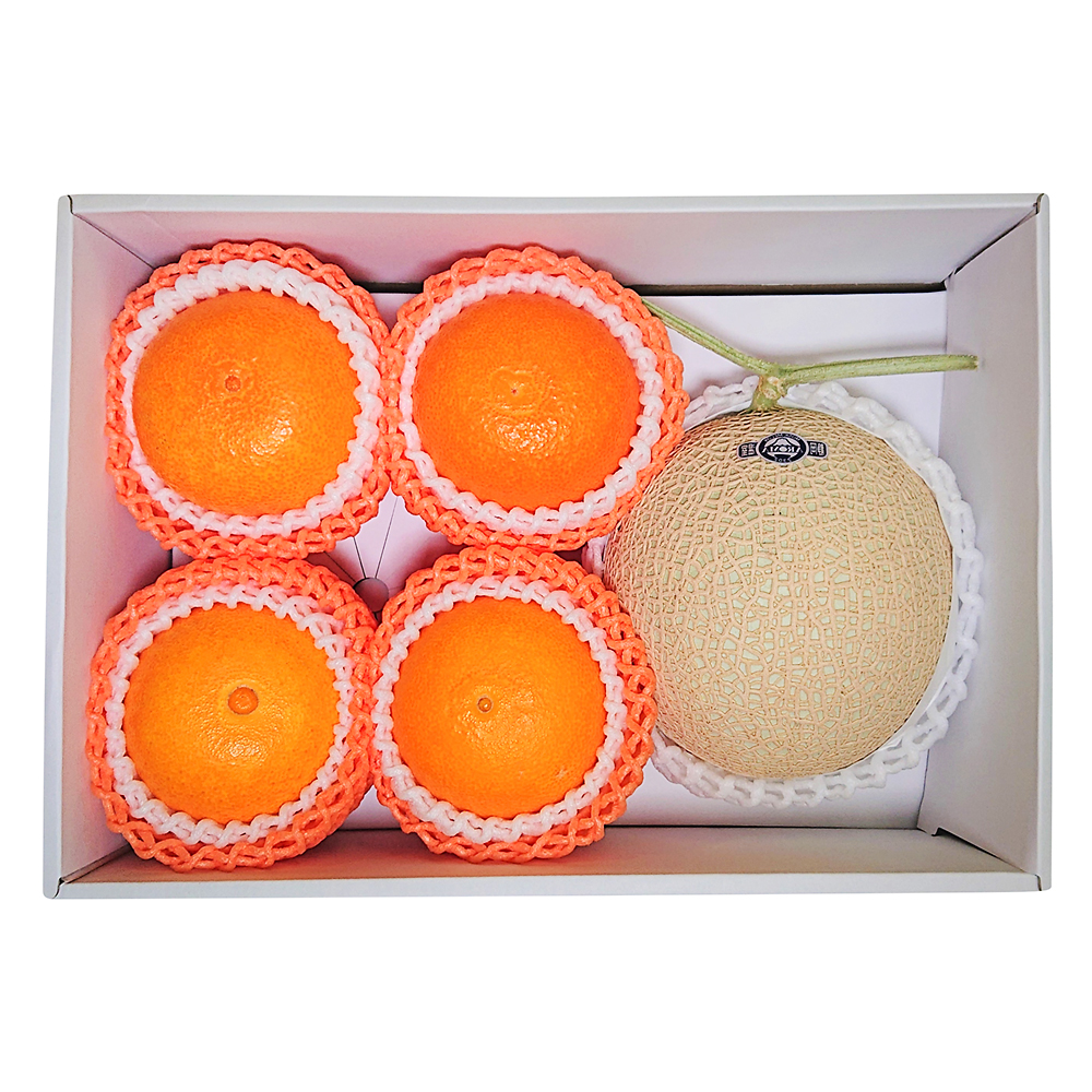 静岡県産マスクメロン×1個(約1.5kg)、愛媛県産紅まどんな×4個