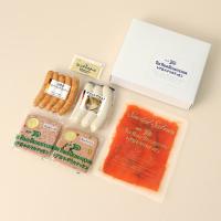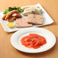 コンビーフハッシュローフ(75g)、スモークサーモン(70g)、ヴァイスヴルスト(180g)、荒挽きジャーマンウインナー(125g)、パテドカンパーニュ(75g)、フレンチマスタード(10g)