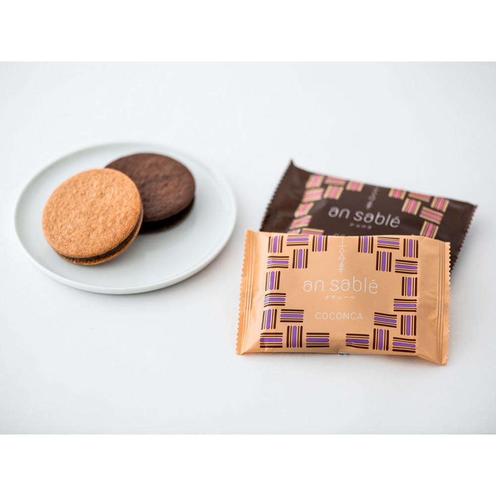 広島・宮島で100年続くもみじまんじゅうの老舗「藤い屋」が手掛ける洋菓子ブランド「COCONCA(ココンカ)」。藤い屋伝統の藤色のこしあんと、皮の口あたりを大事にした粒あんをサブレでサンドした「アンサブレ」をお届けします。