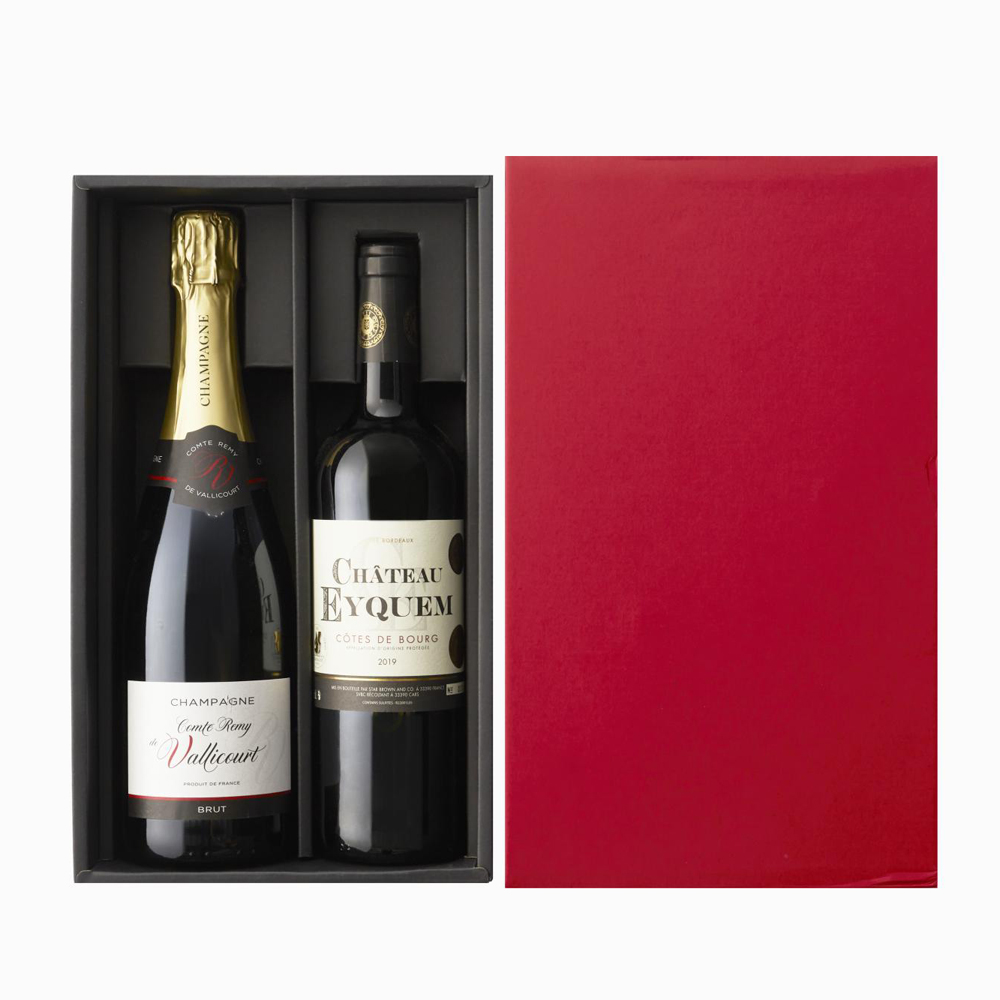 世界最高峰のスパークリングワインと称される「シャンパン」と、銘醸地ボルドー産の金賞受賞赤ワインを詰め合わせました。