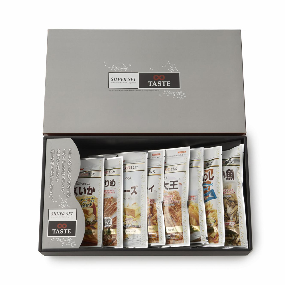 マルエスで大人気のいか天大王や、やわらかくんさきなど人気商品が8袋入ったギフトセットです。