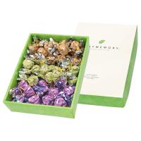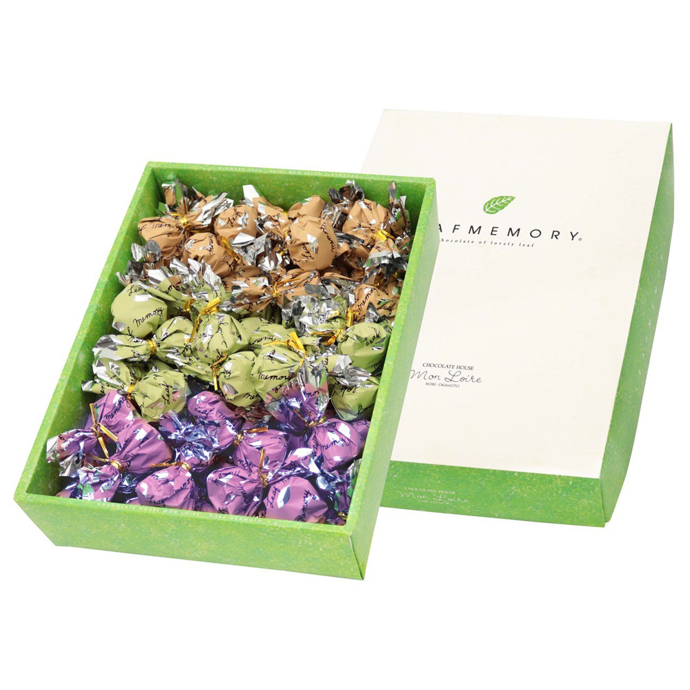木の葉の形をした小さなチョコレート。口溶けよく、上品な甘さが広がります。3種類の包みがあり、1つの包みで3つの味が楽しめます。モンロワールで大人気の“リーフメモリー”のギフトボックスです。