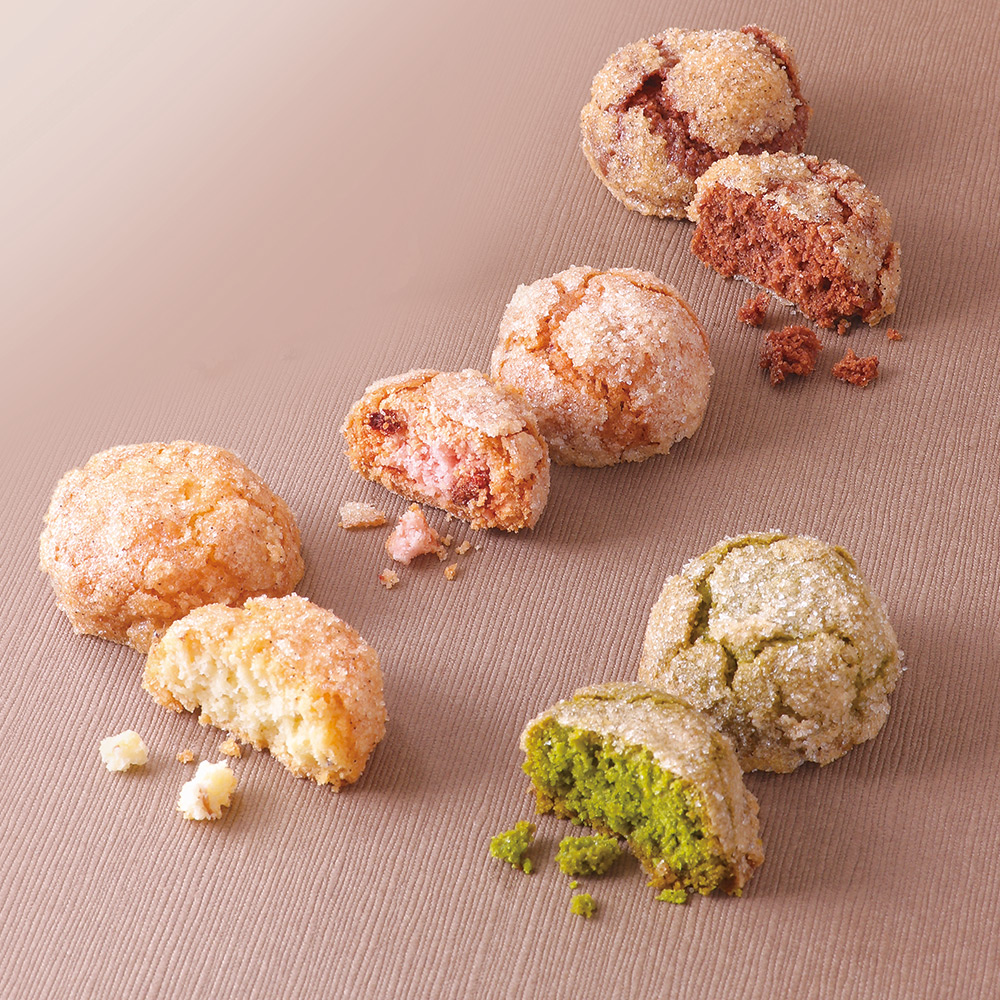 黄金色になるまで焼き方にこだわったフィナンシェ金、焦がしバター、皮付きアーモンド、ヘーゼルナッツが絶妙に香るフィナンシェ銀、マドレーヌ、季節限定の蜜栗のケーキやサクッとくちどけの良いチョコチップクッキー、ポルポローネ、天使のリボンパイを種類豊富にアソートいたしました。