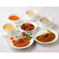 つぶ入りコーンスープ・10種野菜のクリームスープ・パンプキンクリームスープ・野菜のチャウダー・オニオンスープ・国産マッシュルームのクリームスープ・オマール海老のビスク・コンソメスープ・ドライカレー 各150g、ビーフカレー・ビーフシチュー・ハッシュドビーフ 各180g
