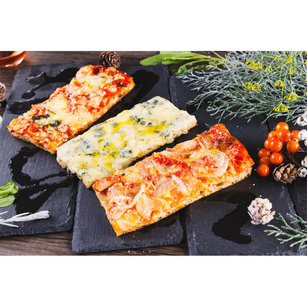ピッツァマルゲリータ、4種のチーズピッツァ、自家製ミートソースのラザニア風ピッツァ、ベーコンと玉葱のアマトリチャーナ風ピッツァ、魚介のペスカトーレピッツァ、キノコとエビのスモークチーズピッツァ、ナスとモルタデッラのピッツァ(サイズ約14×7cm)各1枚